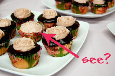 At which point I decided to try to make roses. Which, surprisingly, were much easier than I anticipated. But I realized I was going to run out of frosting. So, in a last minute effort, I made some chocolate ganache and finished my cupcakes. Ta-da! They ended up looking kind of cute, and the shower was really fun and people liked them. The end?